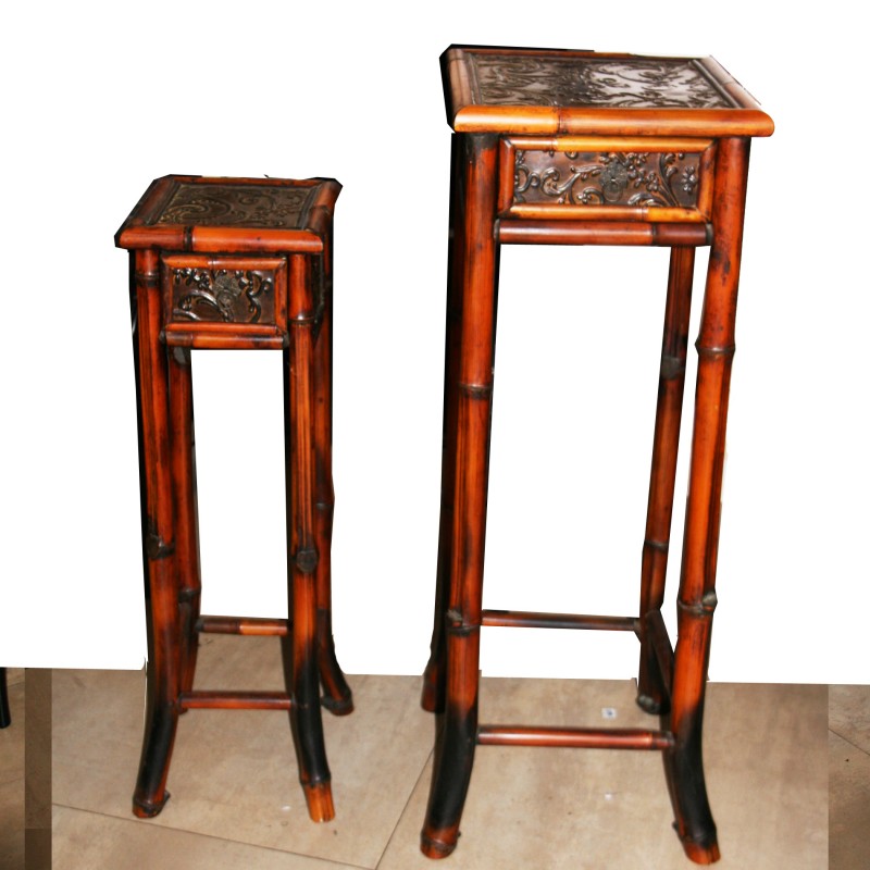 Mesas auxiliar o telefonera estilo Chippendale de bambú encastrables con cajón ,lote 2